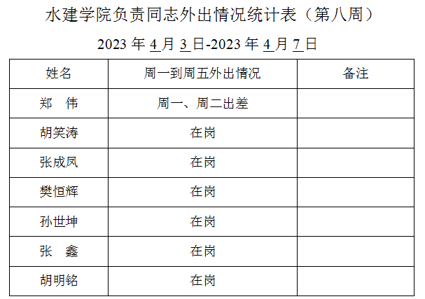 » 六合彩结果 负责同志外出情况统计表(第八周)