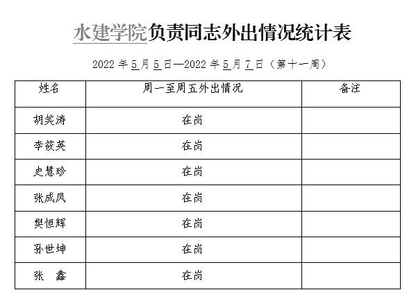 » 六合彩结果 负责同志外出情况统计表(第十一周)