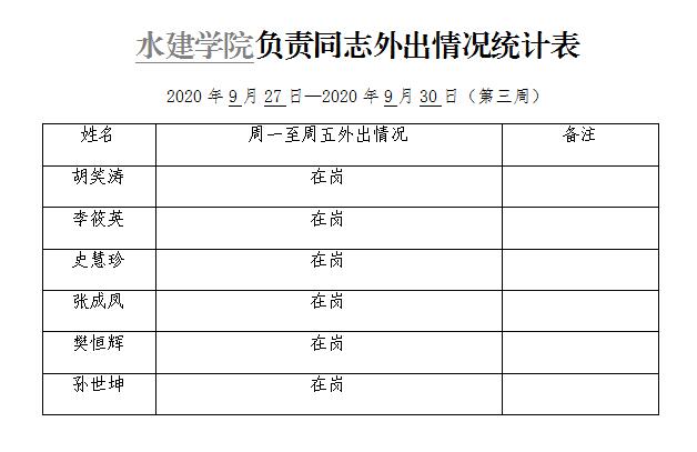 » 六合彩结果 负责同志外出情况统计表(第三周)