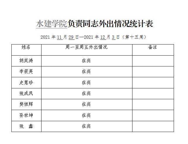 六合彩结果 负责同志外出情况统计表(第十五周)