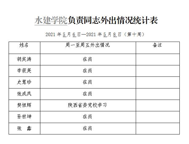 » 六合彩结果 负责同志外出情况统计表(第十周)