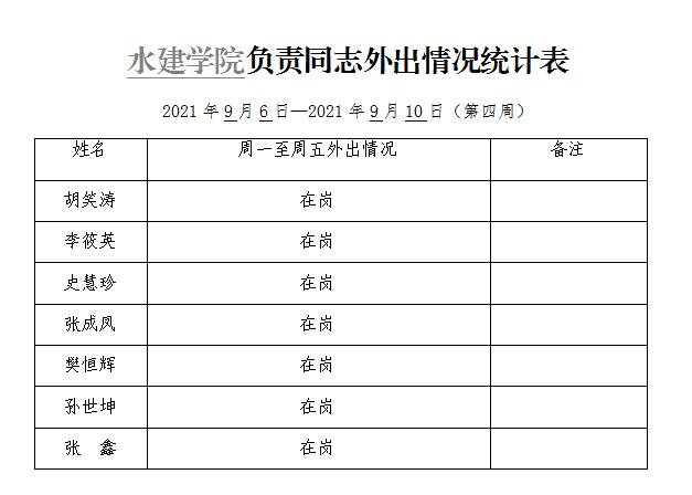 » 六合彩结果 负责同志外出情况统计表(第四周)