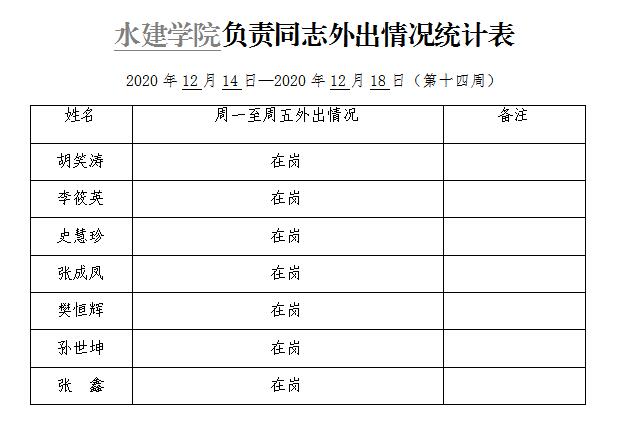 » 六合彩结果 负责同志外出情况统计表(第十四周)