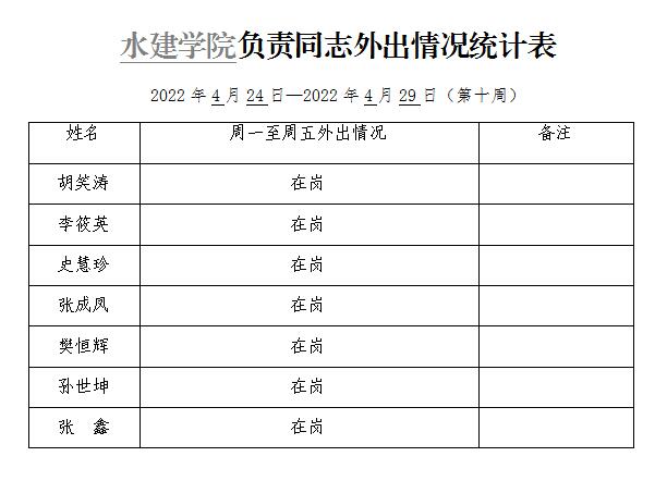 » 六合彩结果 负责同志外出情况统计表(第十周)