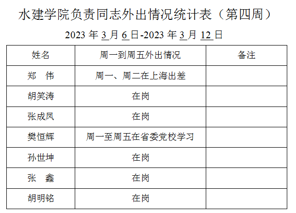 » 六合彩结果 负责同志外出情况统计表(第四周)