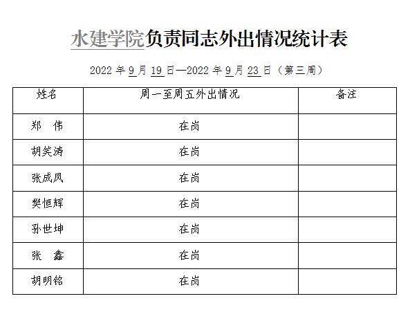 » 六合彩结果 负责同志外出情况统计表(第三周)