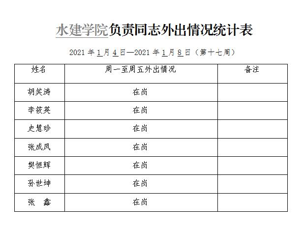 » 六合彩结果 负责同志外出情况统计表(第十七周)
