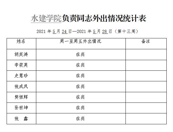 六合彩结果 负责同志外出情况统计表(第十三周)