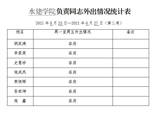 » 六合彩结果 负责同志外出情况统计表(第二周)
