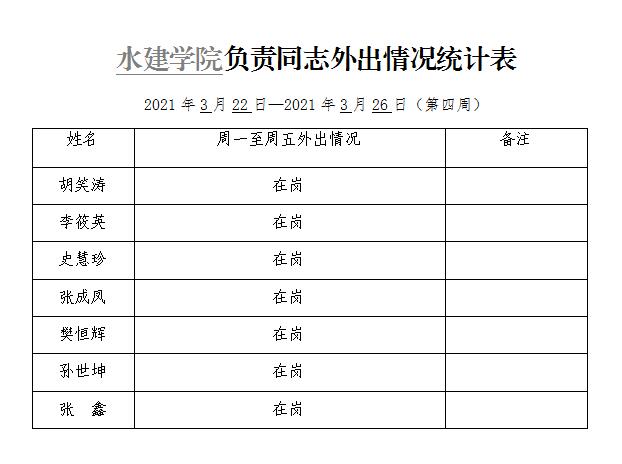 » 六合彩结果 负责同志外出情况统计表(第四周)