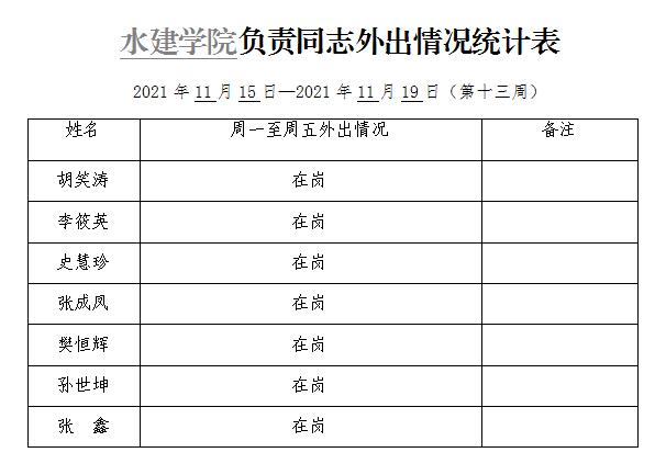 » 六合彩结果 负责同志外出情况统计表(第十三周)
