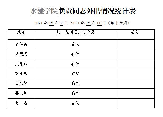 » 六合彩结果 负责同志外出情况统计表(第十六周)
