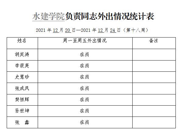 六合彩结果 负责同志外出情况统计表(第十八周)