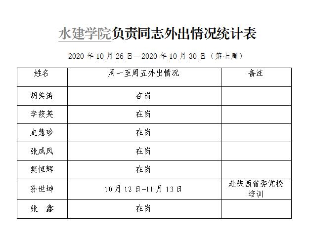 » 六合彩结果 负责同志外出情况统计表(第七周)