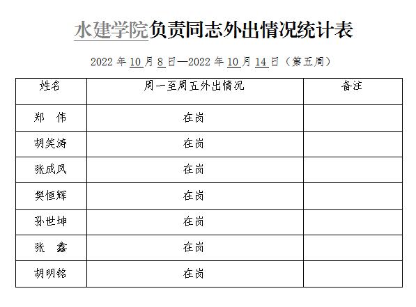 » 六合彩结果 负责同志外出情况统计表(第五周)