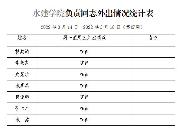 » 六合彩结果 负责同志外出情况统计表(第四周)