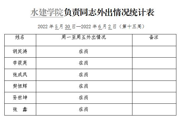 六合彩结果 负责同志外出情况统计表(第十五周)