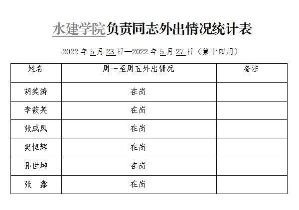 » 六合彩结果 负责同志外出情况统计表(第十四周)