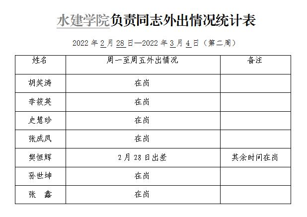 » 六合彩结果 负责同志外出情况统计表(第二周)