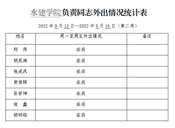 » 六合彩结果 负责同志外出情况统计表(第二周)