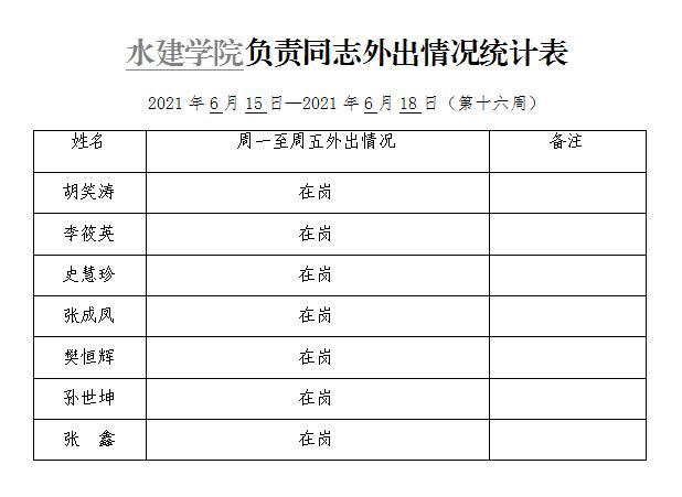 » 六合彩结果 负责同志外出情况统计表(第十六周)