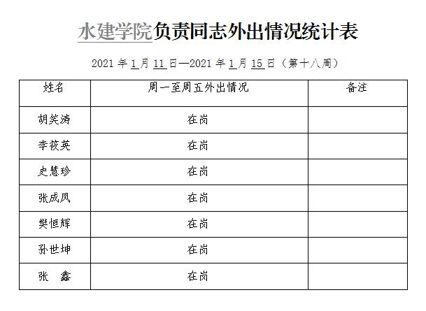 » 六合彩结果 负责同志外出情况统计表(第十八周)