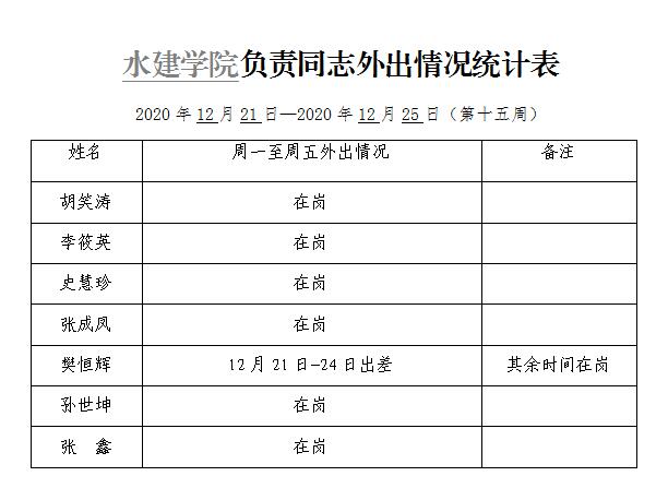 » 六合彩结果 负责同志外出情况统计表(第十五周)
