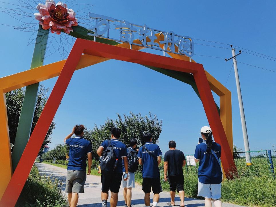 首先调研队采访了本村的村主任,对该村乡村振兴和产业发展进行了整体了解,也询问了他对近年来福德村乡村振兴的感触和对乡村未来的发展规划。经过一番交流后,村主任带领我们前往当地的黄桃基地,并且为我们介绍了当地的黄桃品种,队员们采摘并品尝。之后还参观了肉牛厂和万亩牡丹园。调研过程中,村长也为队员们讲解了其产业链的大致流程。