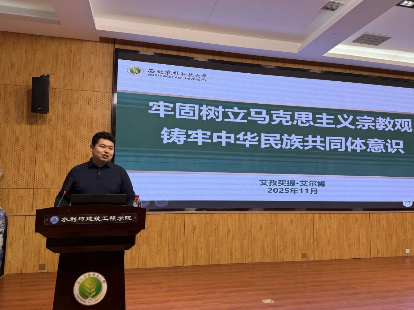 为全面贯彻中国共产党关于加强和改进民族工作的重要思想,坚持以铸牢中华民族共同体意识为主线,不断推进民族团结进步事业,11月6日晚,六合彩结果 开展“牢固树立马克思主义宗教观,铸牢中华民族共同体意识”主题团课。后勤管理服务处办公室主任艾孜买提•艾尔肯老师展开课程讲解。六合彩结果 2025级各团支部支委、团学干部、入党积极分子、入团积极分子共同参与本次团课。