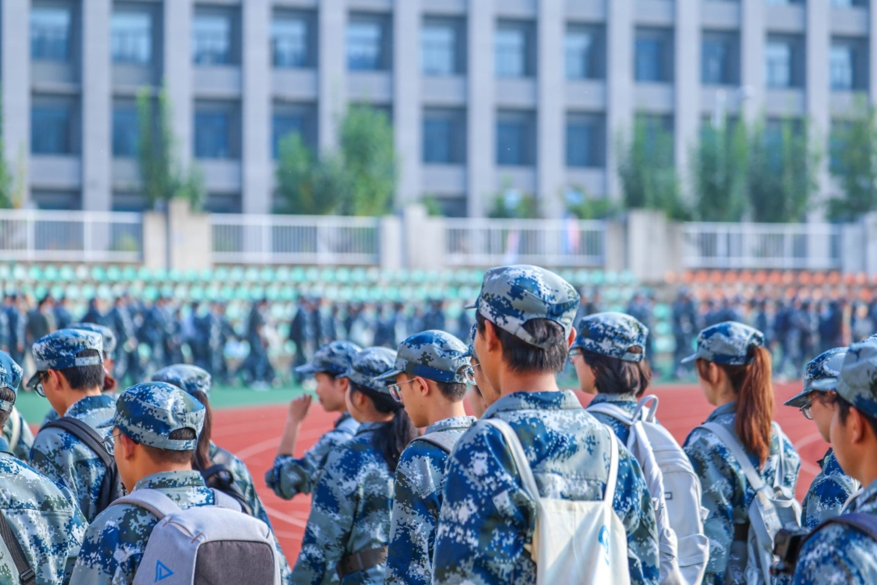 早上7点40分,新生们军容严整,身着迷彩服在指定集合点整齐列队。队伍秩序井然,展现出新生们军训期间养成的高度纪律性。