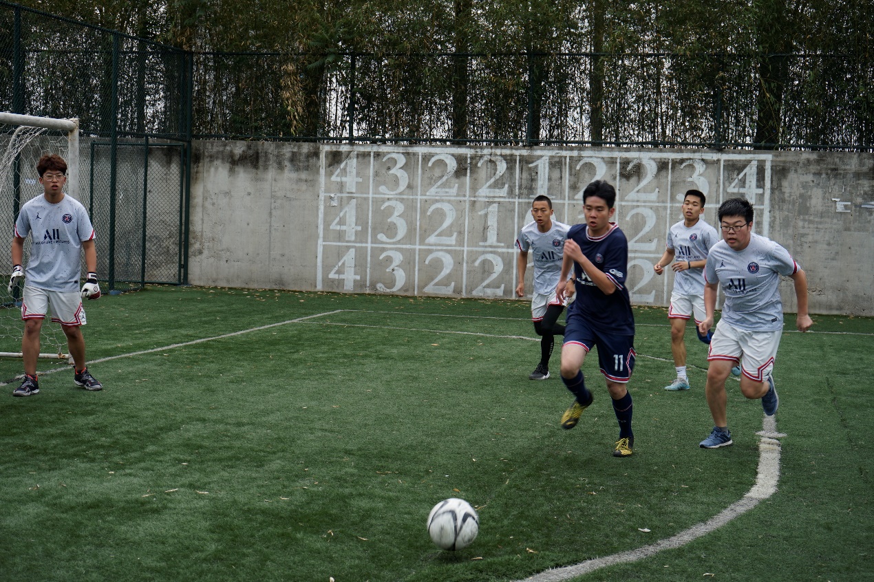 大二的冠亚军决赛更是激烈,A4队在落后局面下奋力追击,从1比3,强势追平比分。跟随足球的飞行轨迹,绿茵场上的每一个人感受激动,喜悦,紧张和短暂的失落。默契的配合,积极的布控,快速的回防与反击,经过球门前的左右盘带,灵活的转身过人接着一脚抽射送进一球,或凭借超强的球感,以一个绝妙地近距离挑射让足球破门而入。球赛的氛围尤为紧张,赛状进入白热化阶段,紧张残酷的点球大战一触即发,有人大力轰门,有人机智的吊射,有高质量的抽射死角,有精彩的勺子点球。这场对球员守门员身心考验,最终以A5队以高难度抽射上门柱弹入球门,顺利结束。结果有人欢喜有人愁,但是最终的结果是令人振奋的,是经历过奋斗后最美好的收获!