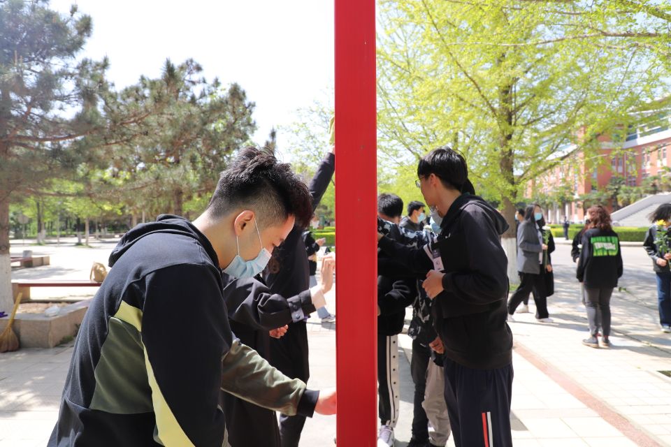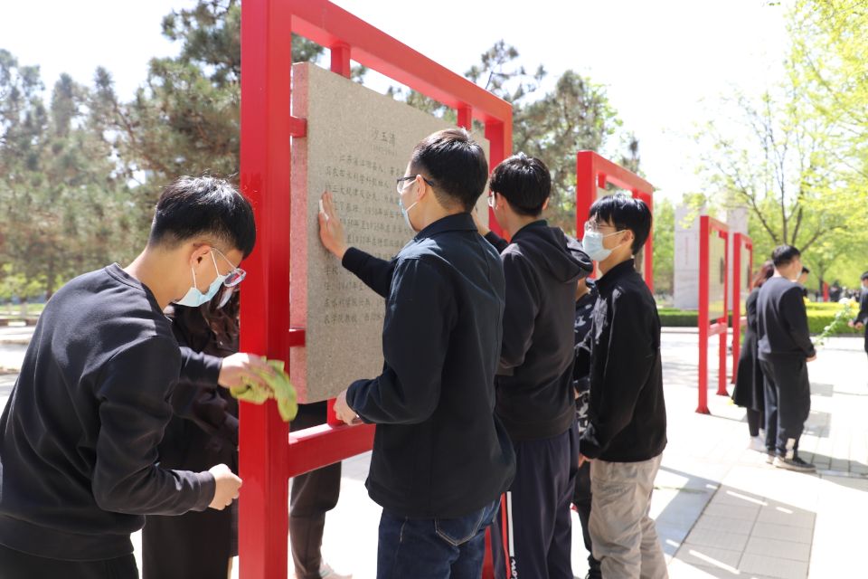 随后由付炳轩同学致悼词,表达了对沙玉清先生的无限敬意,倡导同学们弘扬先生勤勤恳恳、忘我工作的奉献精神;不忘先生关心学生,真情呵护的优良师德;继承先生应对挫折,永不服输的拼搏精神。同学们为沙玉清先生献花并进行了深切缅怀。之后大家认真地用抹布等工具清理沙玉清先生的事迹牌,使之光洁如初,让沙玉清先生的精神在西农校园熠熠生辉。
