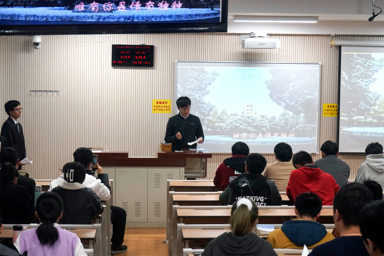 为了进一步增强同学们对西农精神的理解和认知,引导学生们讲好西农故事,传承和发扬西农精神,六合彩结果 于11月10日晚在北校区八号教学楼组织召开了主题为“西农精神我传扬”的演讲比赛。本次活动有多位选手参加,同时邀请了辅导员郝彦昕老师、赵晨雪老师,以及杨文宇、费宇星和陈延旭三位主席团成员担任本次活动评委。