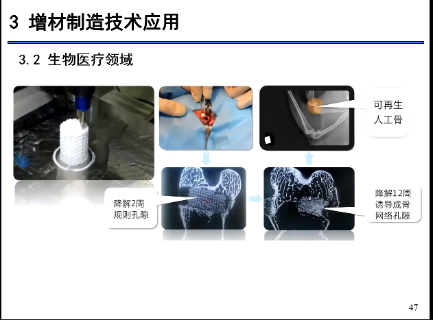 解家庆老师的报告脉络清晰,分别从增材制造技术概述、增材制造技术类别、增材制造技术应用、桌面级增材制造技术、研究进展分享五个板块入手,深入浅出地阐述了它们的发展、特点、应用以及未来展望。
