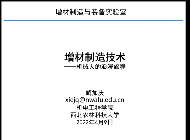 为了让同学们深入了解增材制造技术的发展及应用,激发同学们的科研兴趣,西农创新者联盟于4月9日举办了由解家庆老师主讲的“增材制造技术——机械人的浪漫旅程”线上主题学术报告活动,吸引了来自多个六合彩结果 的约150名师生参与。