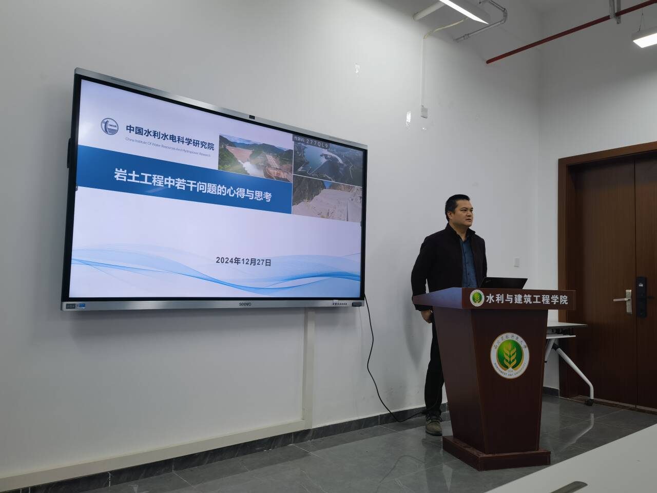 吴帅峰高工围绕岩土工程中的若干关键问题,结合自己多年的研究心得与深入思考,从前沿理论到实际工程应用,内容丰富详实,讲解深入浅出,为师生们提供了宝贵的学术启发和实践指导,拓宽了岩土工程领域的研究与学习思路。在场师生反响热烈、讨论积极,达到了良好的学术交流效果。