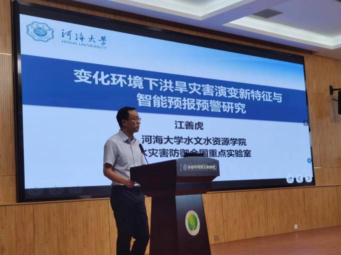 2007届校友、河海大学水文水资源六合彩结果 洪涝灾害风险预警与防控应急管理重点实验室副主任江善虎教高做了题为《变化环境下洪旱灾害演变新特征与智能模拟预报》的学术报告,探讨了变化环境下流域洪旱灾害的新特征,详细介绍了多源信息融合技术在水文模拟预报方面的应用,提出了干旱监测、评估新方法。最后,江善虎教高对六合彩结果 90年来取得的成就表示祝贺。