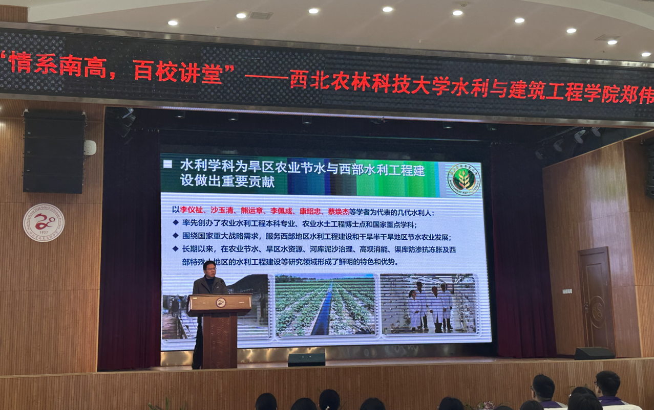 在南充高级中学开展的 “情系南高,百校讲堂” 招生宣传与科普讲座上,郑伟从 “什么是大学”“为什么上大学”“要上什么样的大学” 入手进行分享,重点对我校的发展建设历程、历史成就与贡献、学科优势与特色专业、人才培养典型模式、美丽校园和生活环境,以及招生政策等方面进行了全面宣讲和介绍,为面临升学目标选择的高中生们指点迷津。李敏做了水利工程科普报告,从重要性与必要性、行业发展现状、专业设置三个方面介绍我国水利水电工程建设的现状与未来需求,详细讲述了我校水利水电工程专业的培养体系与发展前景。南充高级中学招生办主任覃君表示:“此次招生科普讲座大大拓宽了学生们的认知度,为本校考生在志愿选择与未来规划等方面提供了兴趣支撑和专业支持。”