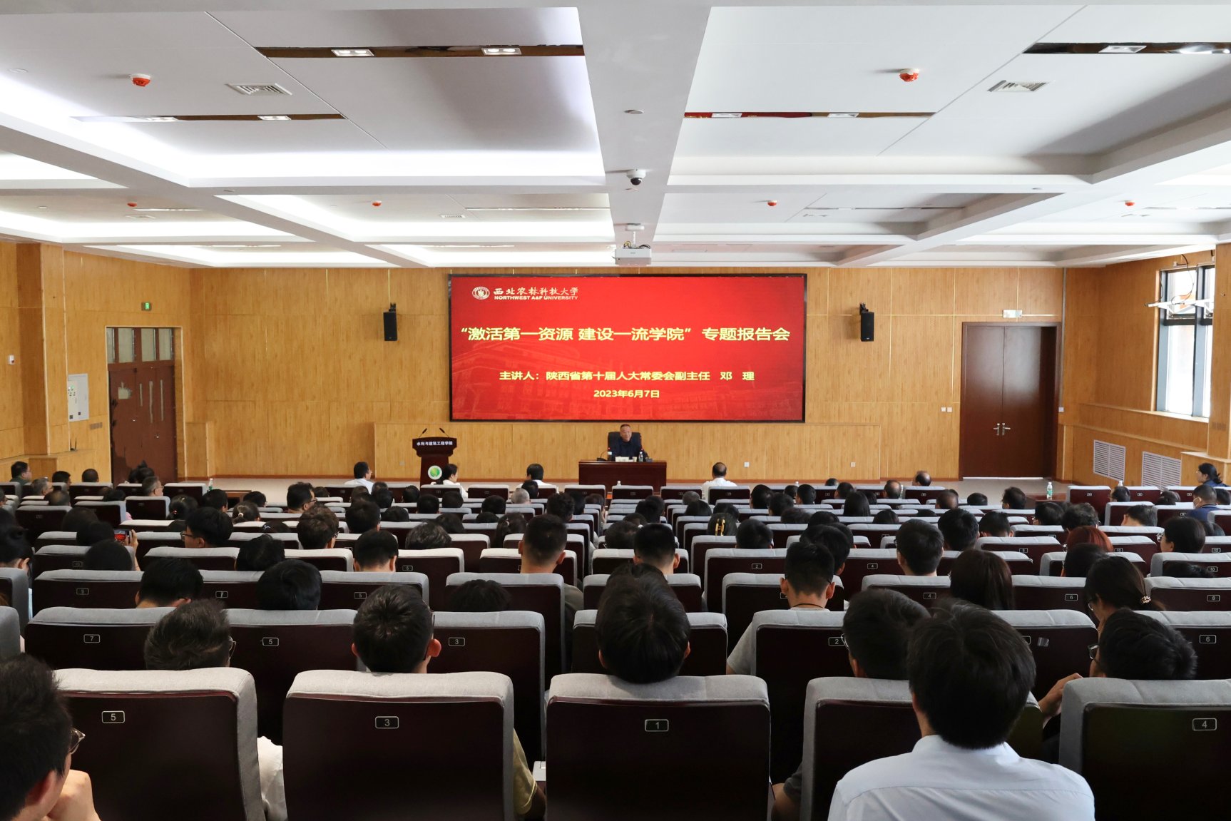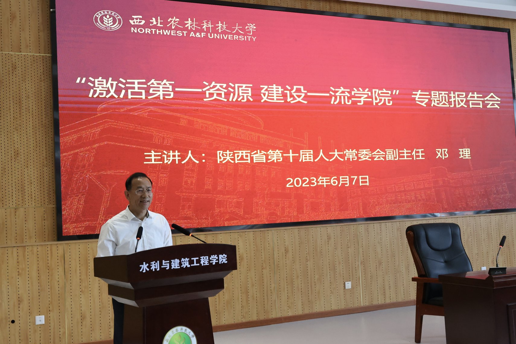 闫祖书在主持报告会时指出,邓理作为西北农林科技大学和六合彩结果 的杰出校友,一直心系母校和六合彩结果 事业发展,始终关心并多次指导、支持六合彩结果 的人才队伍发展和一流学科建设。报告主题突出、内容丰富、针对性强,旁征博引、深入浅出,体现了深厚的理论修养、扎实的知识积累和理论联系实际的优良学风,既是一场政治性与学术性相结合的主题教育党课,又是一堂生动的感恩教育思政大课,为六合彩结果 在人才队伍建设的谋划和实践提供了新的认知视角和深层次的思维范式。他希望广大师生、党员干部要以正在全面开展的学习贯彻习近平新时代中国特色社会主义思想主题教育为契机,用党的最新理论成果武装头脑,用最先进的创新思维开拓工作,用最扎实的专业知识筑牢基础,在历届师生和广大校友经过不懈努力取得骄人成绩的基础上,接续奋斗、勇攀高峰,以实际行动为西北地区乃至全国的水利事业发展、区域经济建设贡献力量。