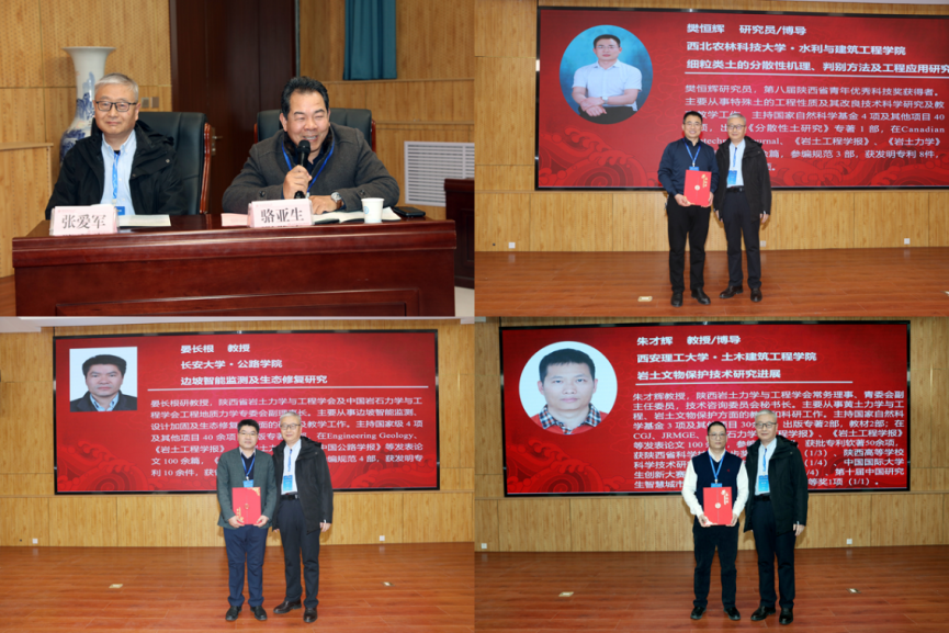 会议分为三个阶段。第一阶段由学会常务副理事长兼秘书长张志强教授主持。学会理事长、西安理工大学党发宁教授进行了2024年学会工作总结报告,并对来年工作重点和方向进行部署;随后,学会3个工作委员会和3个专委会即技术咨询与成果评价工作委员会、教育工作委员会、青年工作委员会、地下空间工程专业委员会、环境岩土工程专业委员会以及岩土工程安全与防控专业委员会分别进行2024年度工作汇报,会议审议了由我校牵头拟成立的土体稳定与固化专业委员会、长安大学牵头拟成立的绿色智慧岩土工程专业委员会和西安理工大学牵头拟成立的岩土文物保护专业委员会的成立方案。随后,为新当选理事、第三届陕西省岩土力学与工程优秀学术论文、2024年度优秀理事和工作者颁发奖励证书。