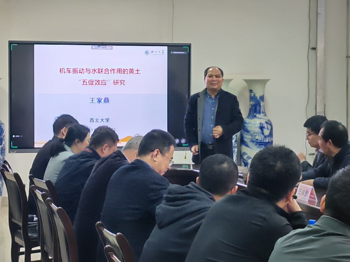 报告会上,王家鼎教授首先介绍了我国重载铁路和高速铁路的发展,接着针对实际工程中机车振动和水联合作用,提出了促裂、促渗、促崩、促滑、促沉的“五促”效应,并对其研究团队在“五促”效应的研究成果进行了详细的介绍。