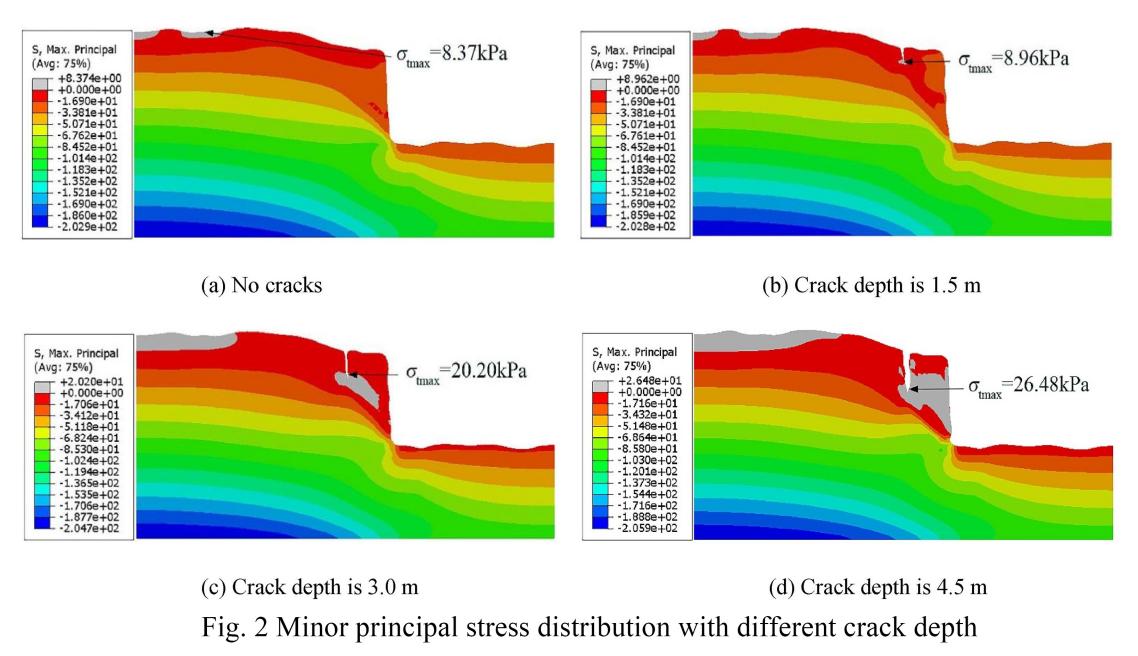 针对这一重大需求,侯天顺副教授团队揭示了降雨作用下裂缝深度和裂缝宽度对崩塌体稳定性的影响,以及崩塌体的失稳破坏机理。依托中国科六合彩结果 水利部水土保持研究所长武黄土高原农业生态试验站,团队基于流固耦合原理和强度折减法,采用有限元方法对不同裂缝深度和裂缝宽度的崩塌体进行数值模拟计算,研究强降雨作用下裂缝对黄土崩塌的影响。研究结果表明,随着降雨的入渗,一方面使崩塌体自重增大,坡脚剪应力增大。另一方面,雨水从崩塌体外边缘渗出时会产生渗透力,增大崩塌体的倾覆力矩。裂缝深度逐渐增加的过程中,裂缝尖端拉应力值逐渐增大,崩塌体向临空面的倾倒趋势越来越明显,塑性区从坡脚逐渐延伸到了裂缝尖端处,崩塌体安全系数逐渐降低甚至小于1。随着裂缝宽度的增加,崩塌体重心逐渐外移,坡脚和裂缝尖端处土体变形逐步增大,崩塌体稳定性不断降低。